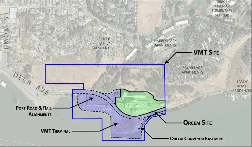 The Orcem California Project involves construction and operation of a processing facility designed for production of a high performance “green” cement, a recycled and beneficiated material produced with an order of magnitude less CO2e and other polluting air emissions than the traditional portland cement consumed in California. This green cement is technically known as ground granulated blast furnace slag (or GGBFS). The Orcem facility will include approximately 78,000 square feet of buildings and equipment, together with outdoor storage areas, and at full capacity will produce approximately 780,000 cubic yards of product annually. Located on approximately 4.83 acres of the former General Mills plant site adjoining Mare Island Strait, the Orcem Project will import a majority of the raw materials through the adjoining Vallejo Marine Terminal project.